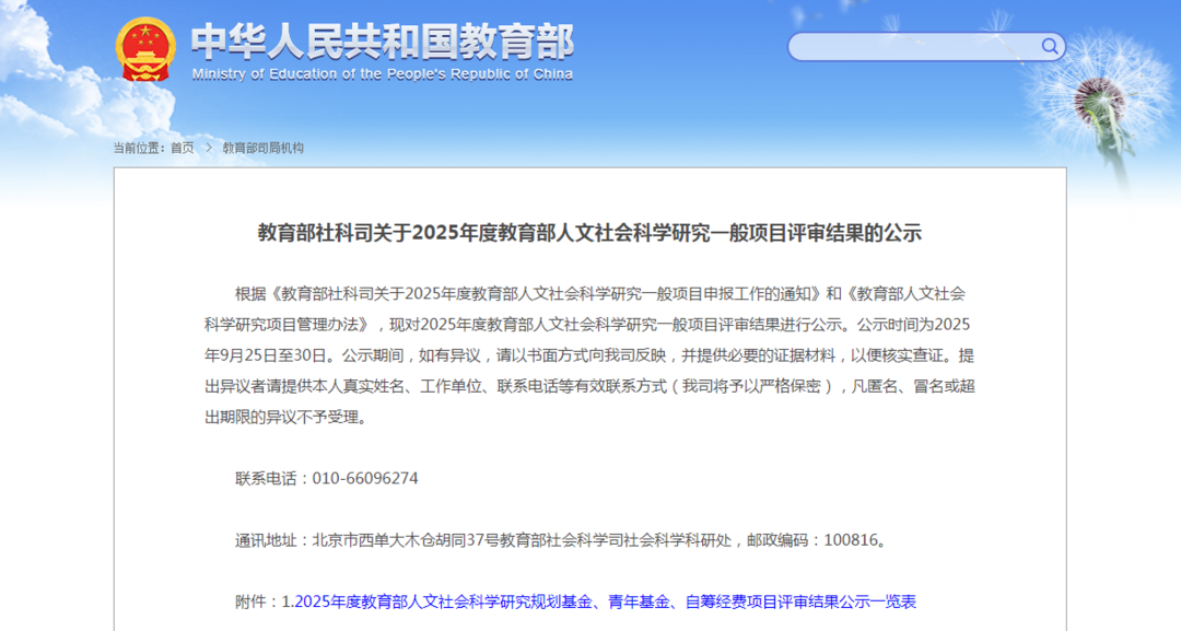 2025年9月25日,教育部社科司发布了《2025年度教育部人文社会科学研究一般项目评审结果的公示》。我校马克思主义学院副院长、副教授沈元军申报的课题《中国共产党成立以来英模人物的历史演进规律及培育路径研究》获批青年基金项目立项。
