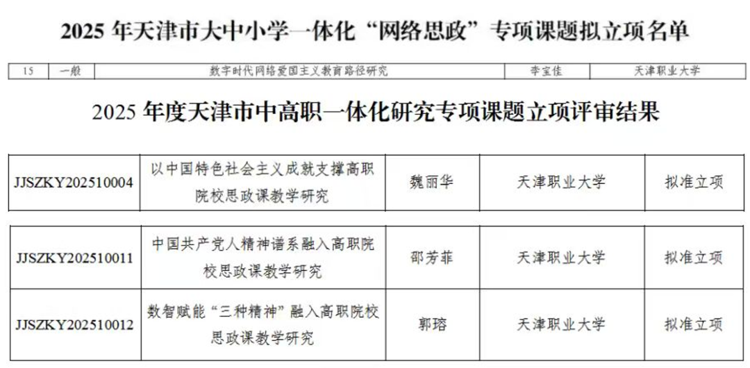 近期,我校马克思主义学院多项课题获批立项,喜获佳绩。其中1项为2025年度教育部人文社科研究青年基金项目,8项为2025年度天津市思想政治理论课常设课题项目。